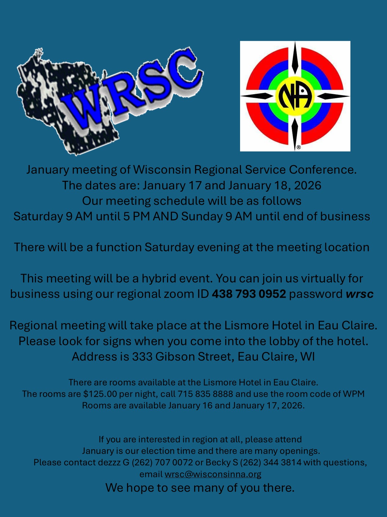 - Wisconsin Region Service Positions Opening in January: Service Conference Jan. 17-18